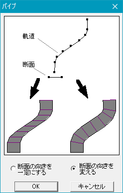 らせんとパイプを併用した場合にはご覧いただいている通り、らせん曲線の