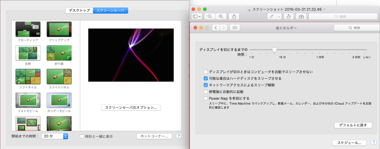 imacのtab-mate controller接続状態において、ディスプレイ切が起動しません。一方ディスプレイ切より10分遅く設定してあるスクリーンセーバーは起動します。tab-mate controllerが接続されていない状態ではディスプレイ切の状態になりました。 ご回答お願いします。 ------------------------------------------------------------ ■使用ソフトウェア ComicStudioEX( ) ComicStudioPro( ) IllustStudio( ) CLIP STUDIO PAINT(◯ ) 六角大王Super( ) バージョン: ※[ヘルプ]メニュー→[バージョン情報]で確認できます。 ■OS Windows XP( ) Windows Vista( ) Windows 7 ( ) Windows 8( ) Windows 8.1( ) Windows 10( ) MacOS X 10.5( ) MacOS X 10.6( ) MacOS X 10.7( ) MacOS X 10.8( ) MacOS X 10.9( ) MacOS X 10.10( ) MacOS X 10.11(◯ ) その他( ) ------------------------------------------------------------ |