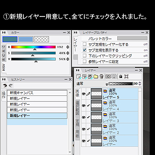 以下に、その工程の「レイヤー」と「ヒストリー」のキャプチャ画像を載せてみます。