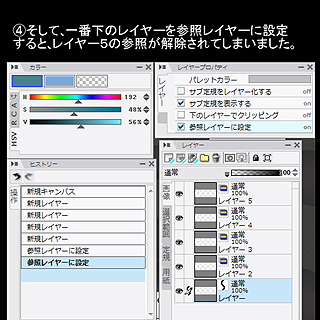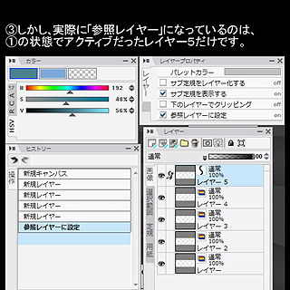 1.[レイヤー]パレットで参照レイヤーにしたいレイヤーを[Shift]+クリックまたは、