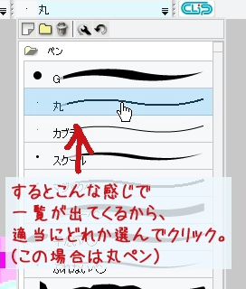 次に出てきた一覧の中からお好きなブラシを選択しクリックします。