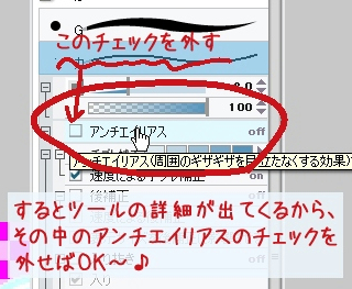 ブラシのアンチエイリアスのチェックの箇所についてですが、
