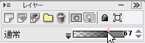 レイヤーの不透明度の変更は、[レイヤー]パレットで任意のレイヤーをクリックで選択して、[合成モード]の右にあるスライダーから行えます。