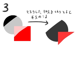 元の絵が半分残ってしまうとのことですが、クイックマスクレイヤーで描画した