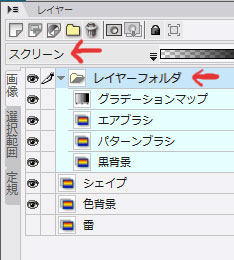 (黒ベタレイヤーは下に置かずにフォルダの合成モードをスクリーンにしてみました)