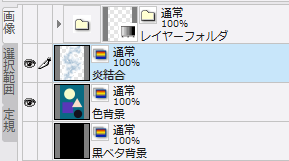 適用された結果が「黒ベタ背景」のレイヤーの上に配置されている状態です。