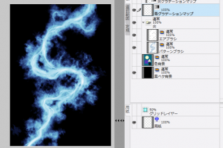 大変初歩的な質問で申し訳御座いません。レイヤー周りの問題にいつもつまずいています。 今回初めてグラデーションマップを使ってみたのですが 判らない所があり、行き詰まってしまいました。 グレー(8bit)で登録した自作パターンブラシとエアブラシで炎のような絵を描けないか 模索していました。 パターンブラシは適当な色(水色) その上のレイヤーでエアブラシ 白で描画し その上に青系のグラデマップを使って色をつけました。 判り易い様 背景を黒にして描きました。 ![]() ですがこの色味で本来は色が付いた背景に描きたいと思っています。(仮にこんな感じで) ![]() ![]() 講座にフィルタレイヤー類は その下全てのレイヤーに 影響を与えるが、 フォルダに入れれば フォルダ内だけに影響させる事が 出来るとありましたので グラデーションマップのレイヤーとパターンブラシとエアブラシで描いた炎のレイヤーを 同一フォルダに入れました。 すると色背景は元の色になるのですが グラデマップでつけた筈の色がうまく反映されないようなのです。 ![]() 黒背景で見てみましたがやはり元の色とは違っています。 ![]() どうしてなのでしょうか? グラデマップと炎レイヤーをフォルダから出して 二つを「選択中のレイヤーを結合」をしてみたり、あれこれやってみても 同じように発色が消えてしまいます。何か見落としがあるのかと思うのですが どうにか一枚目のような色味で 色背景には影響を与えず 炎パターンを描写したレイヤーだけをグラデマップで色付けできませんでしょうか? お知恵を御貸し頂けましたら助かります。 IllustStudioバージョン1.2.5 使用のOS:Windows7 32bit です。宜しくお願い致します。 |