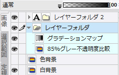 ではレイヤーフォルダ内に「グラデーションマップ」のレイヤーが入って