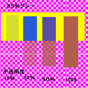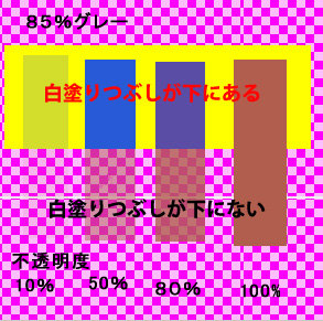・不透明度の違いはその当てられた色を多く塗るか少なく塗るかの違いになる