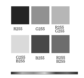 どの色がモノクロではどれ位の明るさになるか