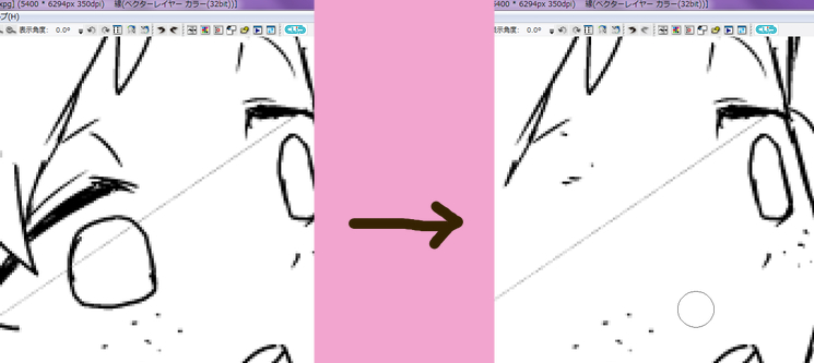 [消しゴム]ツールのツールセット[ベクター用線消去]を使用した所、該当線が