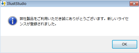 選択し、表示するダイアログにて、製品版のシリアルナンバーにてライセンス登録をして