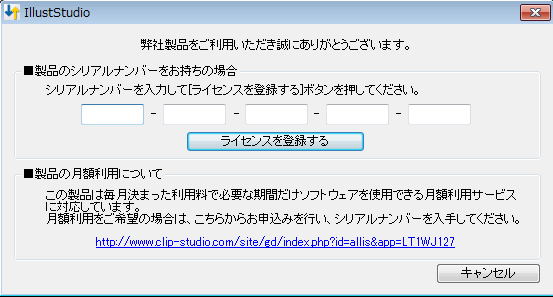 IllustStudioMiniから製品版へのライセンス変更は、[ヘルプ]メニューの[ライセンス登録]を