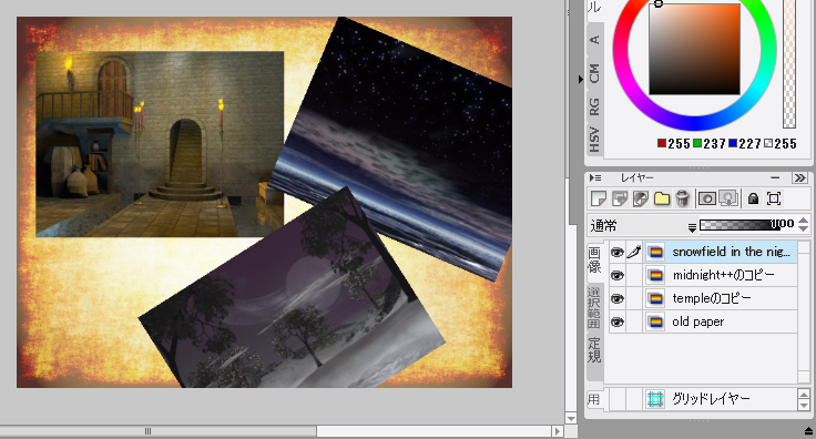 ⇒素材画像がレイヤーとしてキャンバス上に読み込まれます。