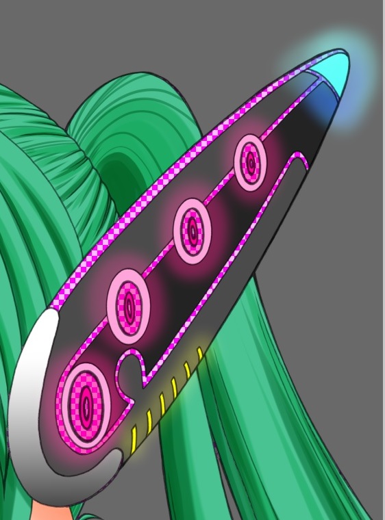 この肩に書いてある数字の赤い部分をボヤーっと光らせようと、 赤色を流し込んだレイヤー(乗算)の上に新規レイヤーを作り、合成モードをスクリーンにし、 エアブラシで赤色を塗ったのですが、何も表示されませんでした。