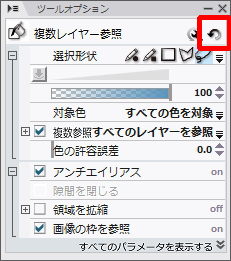 「複数レイヤー参照」を上記と同じチェック状態にしたら、部分塗りつぶしが出来ました。