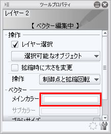 [オブジェクト]サブツールを選択し、ツールプロパティで[ベクター]の[メインカラー]の