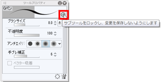 お手数ですが、上記のサブツールのロックが有効な状態でしたら、