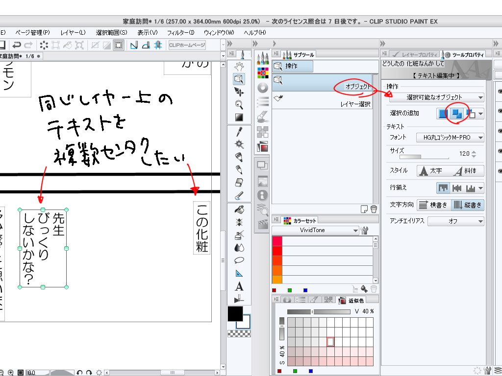 「複数のテキストレイヤーを[オブジェクト]ツールで選択する」のではなく