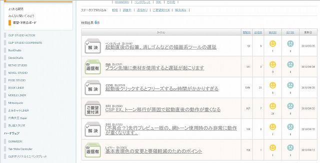 いつもお世話になっています。 ブラウザは、Internet Explorer 10 です。 標記の通り、下記の投稿で 画像が表示されず画像マークのみ表示されています。 画像マークをクリップしても、別画面で途中表示中のまま終了しません。 テノ さん ID:38226「PROからEXへ」 http://www.clip-studio.com/clip_site/support/help/detail/svc/53/tid/38226 記述内容によると、画像の内容が想像できます。 下記の投稿と同じ画像だと思われます。 しかし、下記の投稿で上位5件は正常に表示されます。 最後の1件のみ最初に指摘した投稿と同じで正常に表示されません。 何が原因でしょうか? ![]() ------------------------------------------------------------ ■バージョン: ※[ヘルプ]メニュー → [バージョン情報]で確認できます。 ■グレード PRO( ) EX( ○ ) ■OS Windows XP( ) Windows Vista( ) Windows 7 ( ○ ) Windows 8( ) MacOS X 10.5( ) MacOS X 10.6( ) MacOS X 10.7( ) MacOS X 10.8( ) その他( ) ------------------------------------------------------------ |