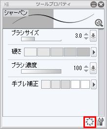 お手数ですが、ツールプロパティの右下の工具のアイコンをクリックして
