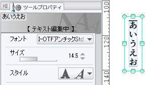 いずれもツールプロパティが以下の画像のようにテキスト編集中となります。