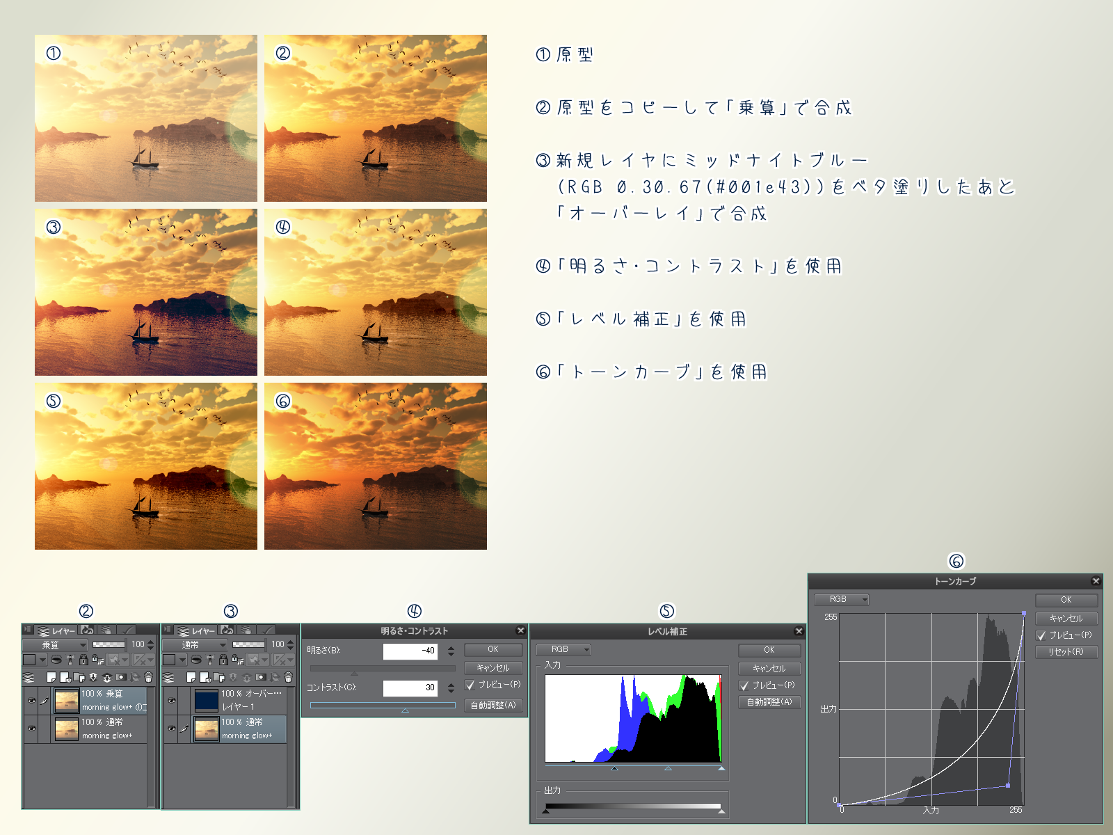 すでに塗った色の透明度を後から変える方法を探しています。 例えば、レイヤ不透明度100%で塗っていて後からちょっと色が薄すぎたなと思っても、 レイヤ内選択や色調補正では透明度のみを変更することが出来ません。 階調化や二値化では思った通りに透明度のみを変えられないし、かと言って塗ったところの上から寸分違わぬサイズ・形状に範囲選択を使わずに上塗りすることは大変手間という以前に不可能です なにか良い手法は無いでしょうか?どなたかご教授お願いします ■バージョン:CLIP STUDIO PAINT PRO Ver 1.2.3 |