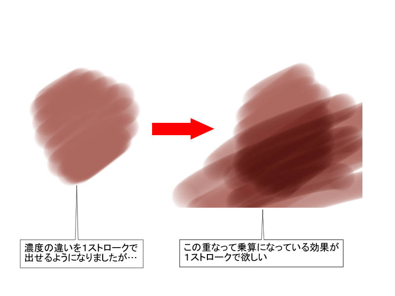SAIのように、一度のストロークで描画色の濃度を上げていく方法 |