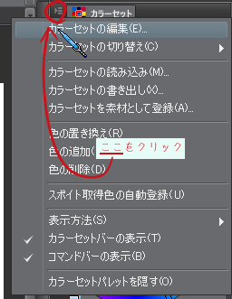 メニューを表示して「カラーセットの編集」をクリック→「カラーセットの編集」ダイアログから