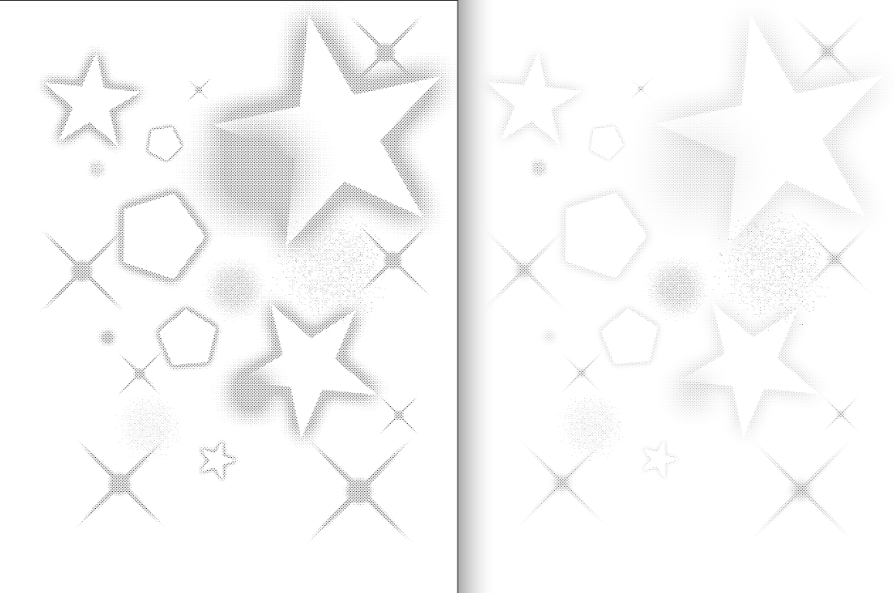 右:トーン化(印刷OK) 左:ディザリング(モアレのリスクあり)