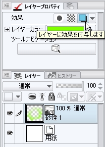 2.[レイヤープロパティ]パレットで、「効果」の[レイヤーカラー]アイコンを