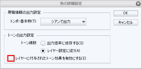 [レイヤーに付与されたトーン効果を有効にする]のチェックを
