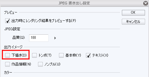 [下描き]にチェックを入れてから、[OK]ボタンを押していただき、書き出されたものを