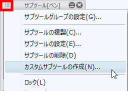 「サブツール」のメニュー表示から[カスタムサブツールの作成]を選択しサブツールの