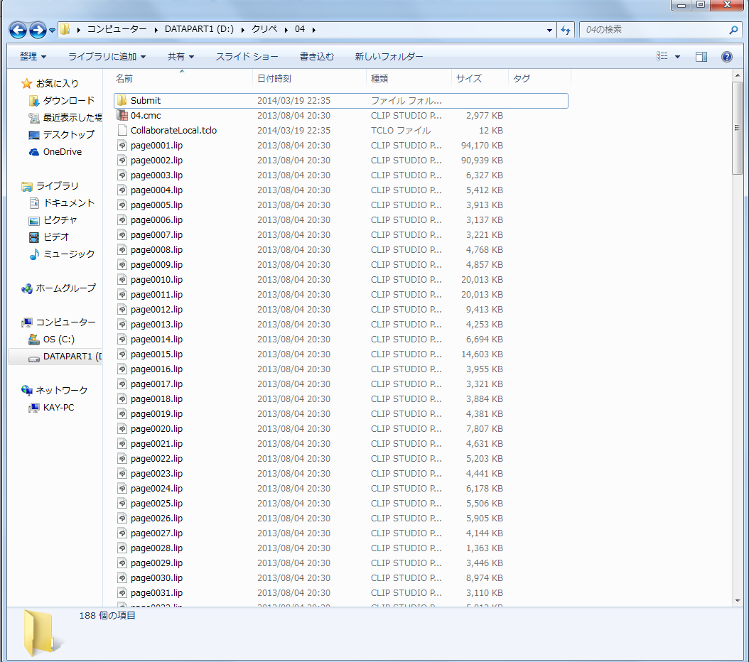 現在、Dドライブにある作品フォルダを開き、格納されている