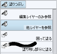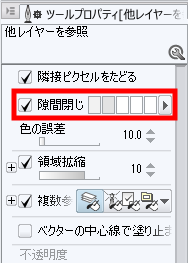 [他レイヤーを参照]サブツールにて塗りつぶしをお試しください。