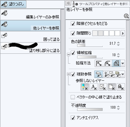 こちらの数値を[0]にした状態で再度塗りつぶしをお試しいただけ