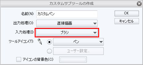 3.ダイアログが出たら、入力処理を[ブラシ]にして[OK]を押します。