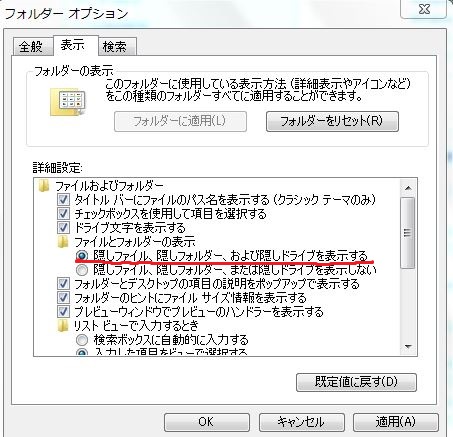 ProgramDataを表示させるには、該当のチェックを有効にした後に、右下の[適用]ボタンを