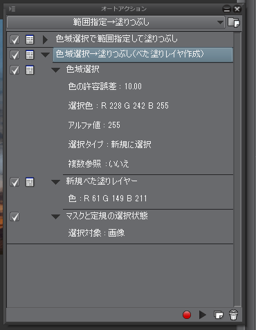 それと選択範囲ランチャの「塗りつぶし」を使用してアクション登録を行うと
