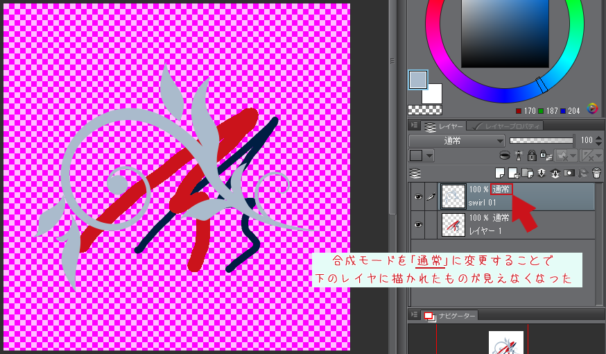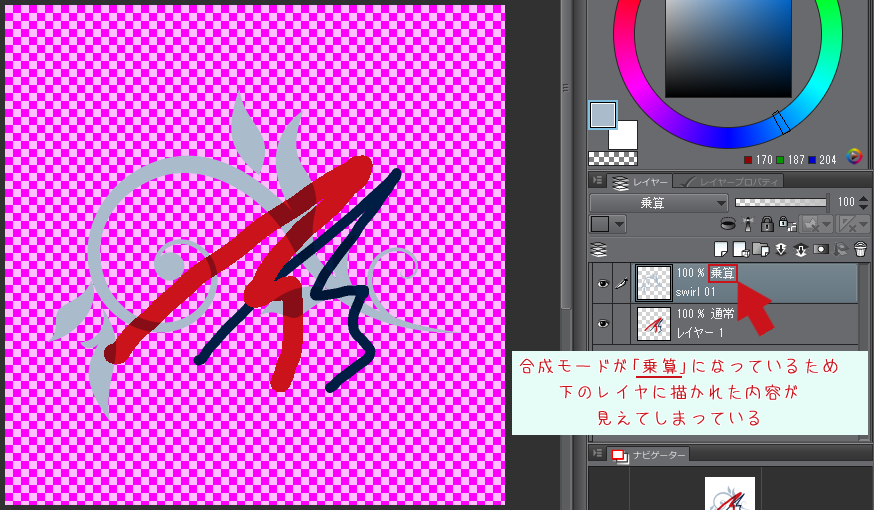 レイヤーの位置は下なのに上のレイヤーへはみ出る |