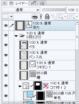 1.レイヤーパレットで結合したいコマを選択状態にします。
