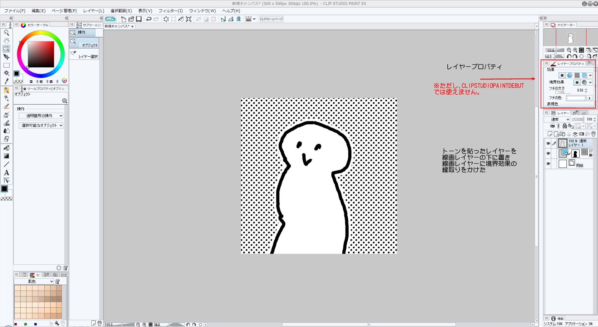 ※ただし、使ってるCLIPSTUDIOPAINTのグレードがDEBUTならレイヤープロパティパレットは使えないけど。