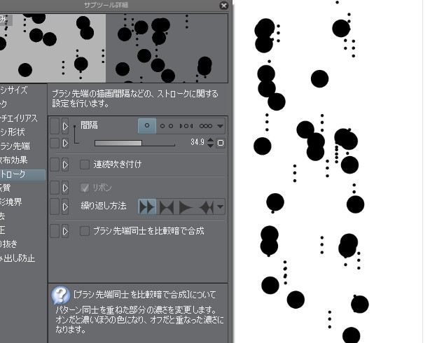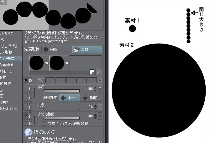 自作素材の筆先への反映のされ方 |