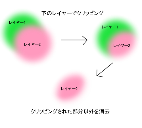 「下のレイヤーでクリッピング」でクリッピング範囲外の消去 |