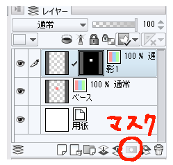 現在マスクレイヤーが選択されているので、レイヤーパレットの描画部分のサムネイルをクリックして描画できる状態に戻します。