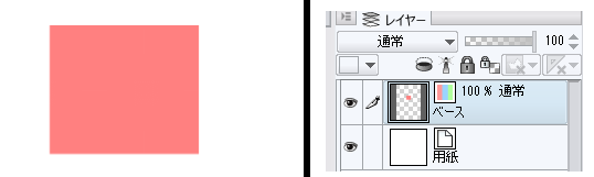次にキーボードの『Ctrl』ボタンを押しながらレイヤーパレットのベースレイヤーのサムネイルをクリックして、ベースで塗った部分だけを選択します。