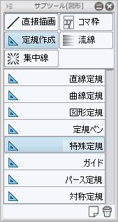 図形ツールが選択出来たら、[サブツール]パレットで[定規作成]の