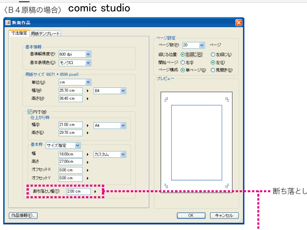 下図でのCOMIC STUDIOの原稿用紙のプレビューを見る限りではトンボがはみだしていません。