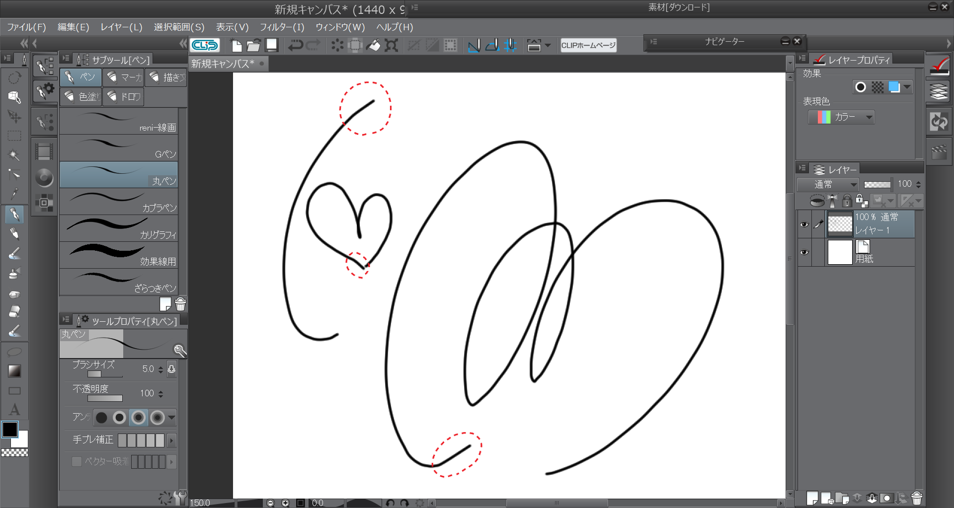 丸ペンにて掲載いただいたような画像の状態という事ですと、ペンタブ側に問題が